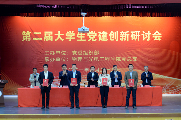 会上,承办单位物理与光电工程学院相关负责人介绍了学院党总支“12365”党建工作法、培育创建全国和省样板支部等工作上的实践及成果。单振涛宣读了党建创新优秀成果表彰决定,大会为获得优秀研讨成果奖的代表进行了现场颁奖。8位获奖者分别代表教师党员、学生党支部书记、教师党支部书记、党总支委员作了典型发言,介绍各自党组织与党员本人在疫情防控常态化下开展大学生党建创新的实践经验。