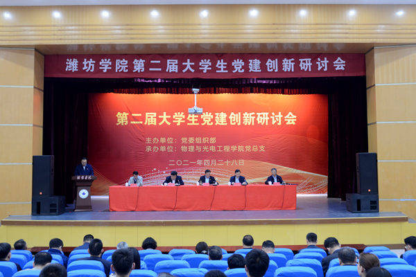 本网讯 4月28日上午,学校第二届大学生党建创新研讨会在闻韶楼报告厅举行。学校党委书记李东,潍坊市委教育工委副书记、市教育局党组成员周书坤,学校党委副书记王清明,党委委员、宣传部部长单振涛出席。党委委员、组织部部长李连成主持会议。本次研讨会由学校党委组织部主办,物理与光电工程学院党总支承办,各学院党总支书记、副书记,教师、学生党支部书记和师生党员代表,学校党委相关职能部门和团委、弘德书院负责人参会。