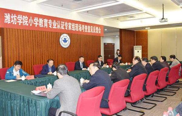 29日上午,意见反馈会在体育馆会议室举行。李中国教授反馈了专家组意见。他指出,潍坊学院高度重视专业认证工作,按照认证标准,主动作为,精心组织,开展了校院联动、内外协同、扎实有序的自评自建工作,取得显明成效。潍坊学院小学教育专业构建了基于产出导向的人才培养体系,培养目标定位合理,目标内涵清晰;形成了“两全”“两注重”的人才培养特色,即全科联合培养、全程强化实践,注重艺术素养、注重核心能力;创新践行了“六五五”实践教学认证模式。李中国对专业现存的有关问题进行了剖析,提出了整改建议。