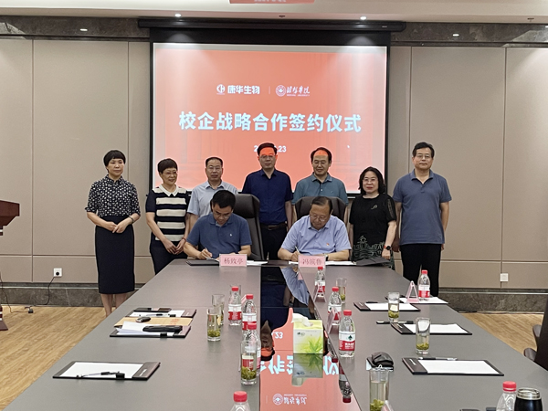 本网讯 6月23日,为深化校企合作,加快推进实施“教研产三个一融合工程”,校长冯滨鲁带领相关部门和单位负责同志,到潍坊康华生物医药产业园考察座谈,并与山东康华生物医疗科技股份公司签订校企战略合作协议。潍坊市经济区管委会主任、国家农业综试区推进办公室主任乔日升、山东康华集团董事长杨致亭陪同考察并参加座谈和签约仪式。学校发展规划处、国际合作交流处、化学化工与生物工程学院、生物与农业工程学院和经济管理学院的负责人参加了考察。