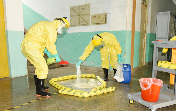 演练模拟了危险废物在储存过程中发生意外泄漏事故,管理人员紧急启动危险废物泄漏事故应急预案,根据规范流程,各司其职、密切配合。经过应急报告、现场警戒、伤员救治、实地勘察、集中收集处置泄漏物、恢复现场等作业,泄漏的危险废物得到了控制和清除,确保了实验室人员、财产和环境安全,避免了人员伤亡和环境污染。