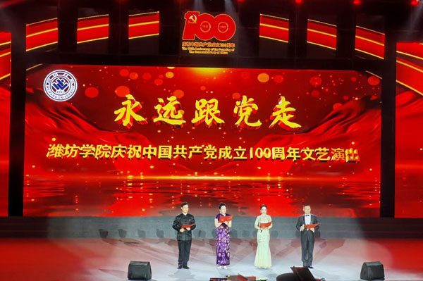 整场演出反响热烈,师生们用舞蹈、演唱、朗诵等多种形式表达出对祖国、对党的无限热爱与祝福,也传递出了潍院人牢记初心使命、奋发图强的气魄和志向。