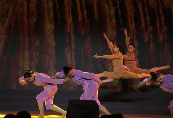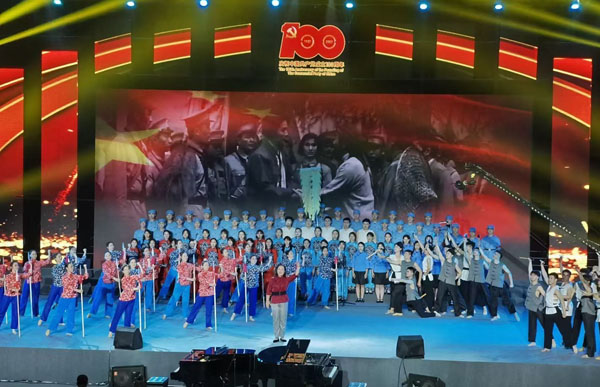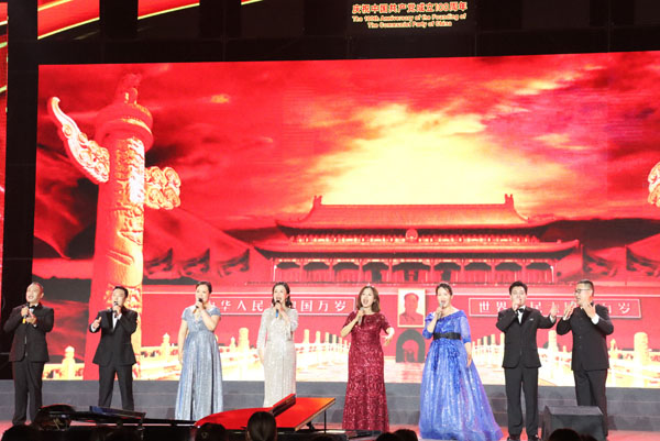 音乐学院刘继鹏教授和三位教师创作的歌曲《永恒的光芒》,将中国共产党的百年历程、建设现代化强国的宏伟蓝图和人民群众的获得感深刻关联,歌颂了中国共产党的百年信仰,赞美中国共产党带领人民所取得的伟大成就;一舞《红船》,让全体观众感受到了中国共产党成立之初在嘉兴南湖上的惊心动魄;一曲《追寻》,追忆百年来中国共产党在岁月与风雨里历久弥坚的初心;铿锵有力的朗诵《宣言》,读尽了党对人民矢志不移的坚守与使命,读尽了青年向党的热血与追随;演出在合唱《共筑中国梦》中落下帷幕。