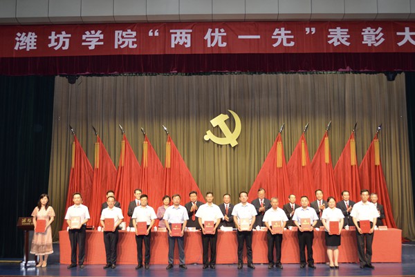 本网讯 6月29日,学校“两优一先”表彰大会在图书馆报告厅召开。学校党委书记李东出席会议并讲话,党委副书记、校长冯滨鲁主持会议,党委副书记王清明宣读表彰决定,会议对优秀共产党员、优秀党务工作者和先进基层党组织进行了表彰。学校党委全体成员出席会议。