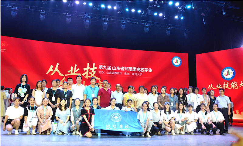 本网讯 7月20日至23日,第九届山东省师范类高校学生从业技能大赛决赛在青岛大学举行。教育部高校学生司副司长吴爱华、全国高等学校学生信息咨询与就业指导中心副主任宁小华、山东省教育厅副厅长戴龙成莅临大赛现场巡视指导并出席颁奖典礼。我校2018级师范类学生通过层层选拔,共有44名学生参加决赛,参赛选手共获得一等奖10项,二等奖15项,三等奖12项,有11名教师获得优秀辅导教师称号,取得了该项赛事历史上的最好成绩。