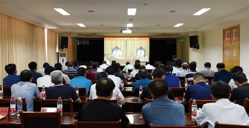 我校在行政楼会议室设立分会场,校领导同中层部门主要负责同志收看会议直播。