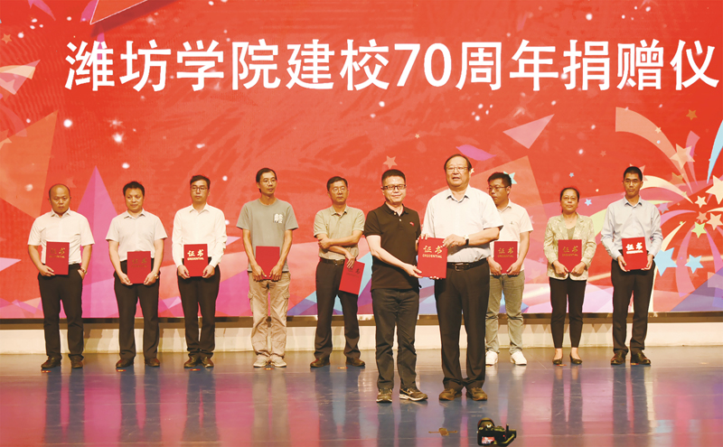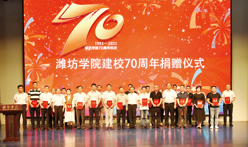 本网讯 金秋九月,五谷丰登。9月23日,学校70周年校庆首次集中捐赠仪式在学校图书馆报告厅举行。企业家、校友共聚一堂,怀着浓情厚谊联袂捐赠,助力潍坊学院发展。