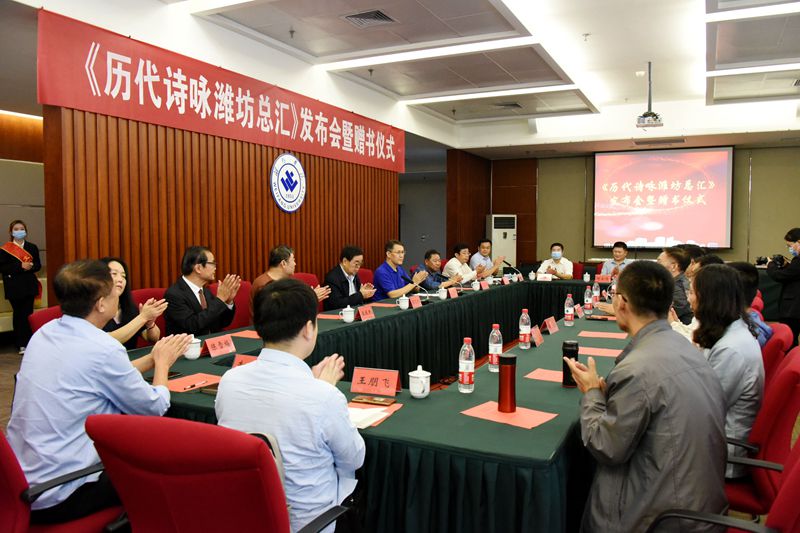 本网讯 9月29日,《历代诗咏潍坊总汇》新书发布会在学校体育馆会议室举行。