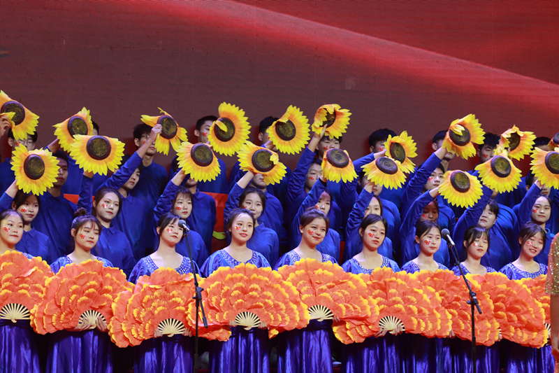 数学与信息科学学院演唱的《国家》拉开了歌咏比赛的序幕。《少年中国说》《祖国颂》《强军战歌》《我们都是追梦人》《在灿烂的阳光下》《没有共产党就没有新中国》《不忘初心》《我们走在大路上》《唱支山歌给党听》《灯火里的中国》……一首首歌唱伟大祖国和党的动人旋律,响彻在潍院的上空。许多比赛团队都加入了领唱、朗诵、舞蹈、武术等创意,展现出了不同的风格。一首首耳熟能详的歌曲,充分展示青年学生爱党、爱国、爱军的情怀和蓬勃向上的精神风貌,唱出了潍院学子对党的无限热爱和永远听党话、跟党走的坚定决心。