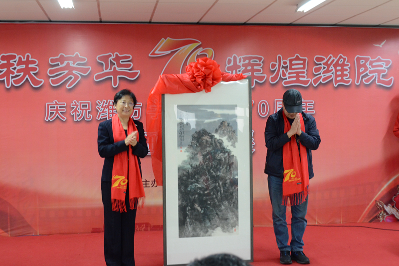 本网讯 “翰墨书盛世,丹青颂母校”。10月13日上午10时,我校“七秩芳华、辉煌潍院”主题书画作品展在校美术馆开幕。潍坊市文联主席肖建华,潍坊市委宣传部三级调研员丁宗坤,山东省书法家协会副主席、潍坊市书法家协会主席纪君,潍坊市美术家协会秘书长、奎文区美术家协会主席谭国华,学校校长冯滨鲁,党委副书记王清明,副校长丁子信、马茜华,党委委员、宣传部长单振涛出席开展仪式,学校相关职能部门负责同志和美术学院领导班子成员参加仪式。仪式由丁子信主持。