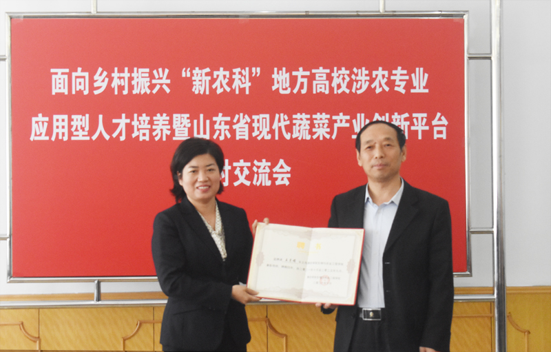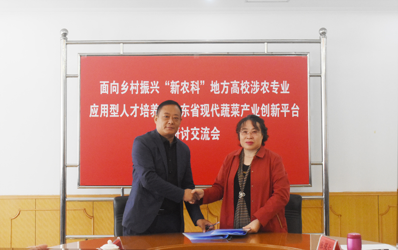 本网讯 10月14日,由生物与农业工程学院承办的“面向乡村振兴新农科应用型人才培养暨山东省现代蔬菜产业创新平台研讨交流会”在我校举行。副校长丁子信出席交流会并致辞。寿光蔬菜产业控股集团副总经理王月娟、山东永盛农业发展有限公司董事长梁增文、山东青然现代农业发展有限公司董事长张志国、临朐县润鑫果蔬种植专业合作社理事长孙好欣等省内9家知名企业家受邀参加本次交流会。教务处、生物与农业工程学院负责同志及部分教师代表参加会议。