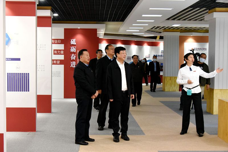 报告会后,学校领导陪同刘运一行参观了校史馆、警务中心、校庆主题书画作品展。