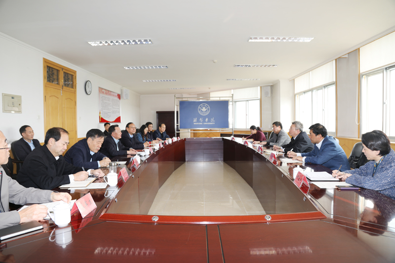 本网讯 10月21日,济宁学院党委书记杨天梅,纪委书记、省监委驻济宁学院监察专员许记中等一行5人来校交流工作。两校围绕应用型大学建设、人才培养工作等进行了座谈交流。学校党委书记李东、校长冯滨鲁、副校长朱猷武出席座谈会。