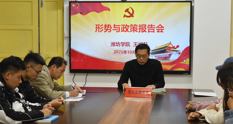 本网讯 10月19日,副校长王旭升到建筑工程学院给学生党员和入党积极分子作《学习习近平总书记“七一”重要讲话》的形势与政策辅导报告。