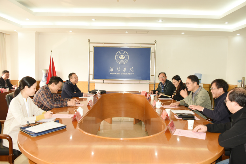 赵光强对考察组的到来表示欢迎,对市人社局一直以来对我校的关心和支持表示感谢,并介绍了我校基本情况和人才工作取得的成绩。人事处负责人汇报了学校2021年度潍坊市突贡专家推荐选拔及入选人员基本情况。