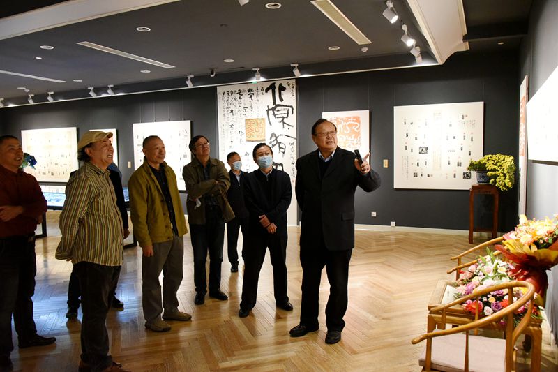 本网讯 11月6日,为进一步推进学校组建陈介祺金石文化书法学院,培养专业人才,开展学术研究,校长冯滨鲁在美术学院相关负责同志的陪同下应邀参观考察了2021潍坊陈介祺金石文化周相关活动并接受了主办方的采访。