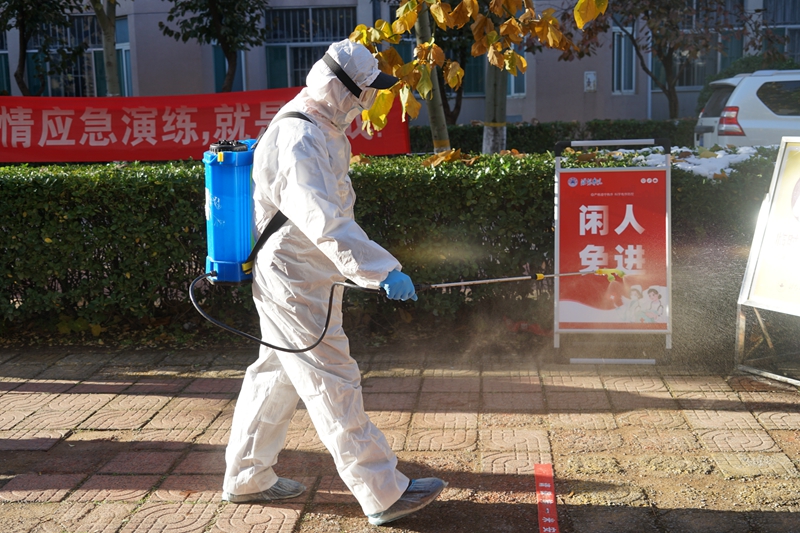 消杀人员对学生甲驻留场所进行终末消毒。沿学生甲行动轨迹,对有关场所全面进行彻底消毒。