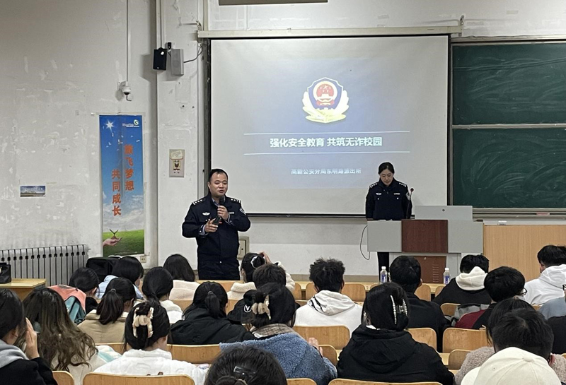 裴警官对常见的骗术进行了分析,假冒公检法诈骗、冒充熟人诈骗、考试诈骗、校园贷诈骗、投资返利诈骗等都是大学生受骗案例中发生频率较高的诈骗方式。裴警官提醒同学们一定要保护好个人信息,若遭遇电信诈骗要准确记录好被骗详情,紧急止付并尽快到最近的公安机关报案。同学们认真倾听并铭记在心,对于裴警官所提到的注册并认证金钟罩和国家反诈中心也迅速按要求完成。