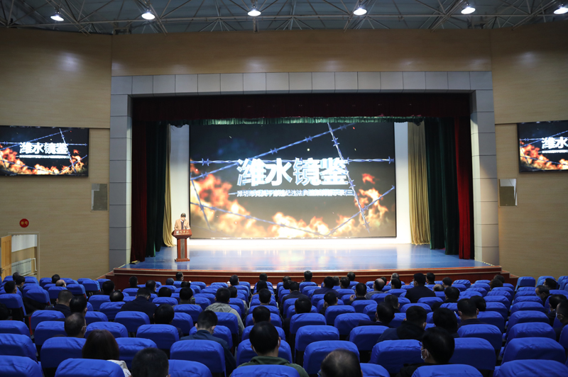 本网讯  11月19日下午,学校组织校领导、处级干部、管理教辅部门正科级干部,在图书馆报告厅观看了廉政警示教育片《潍水镜鉴(三)》。学校党委副书记王清明,副校长马茜华、王旭升,党委委员、组织部部长李连成,党委委员、宣传部部长单振涛参加活动。活动由纪委书记、省监委驻潍坊学院监察专员王建新主持。