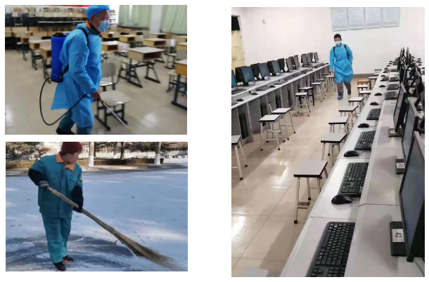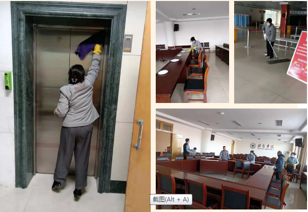 虽然大部分师生都已归家,但潍院里的防控措施从未放松,消毒工作遍及每个角落,防火防爆也是一一落实,雪后的积雪总会得到及时清理。