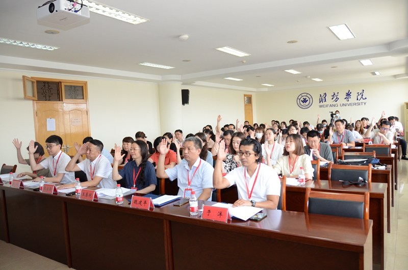 会议选举产生了潍坊学院欧美同学会第二届理事会,王雷当选为新一届会长,张云驹、王春艳、王波、魏建平、田志云、于洋当选为副会长,田志云当选为秘书长。