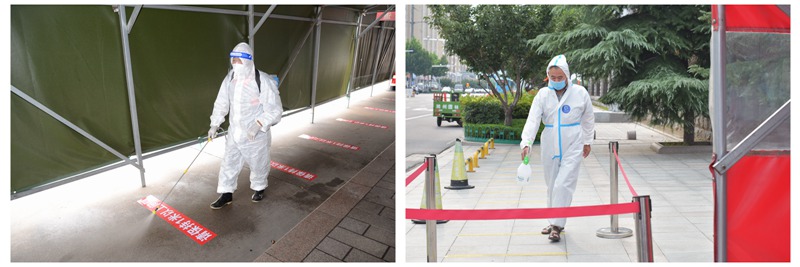 现场还对体温异常、通行码异常学生处置进行了模拟演练。学生入校结束,消杀人员对大门入校通道、临时留观点进行通风消毒。