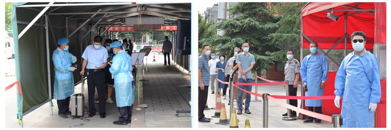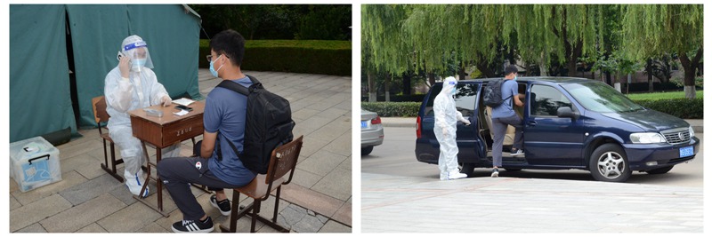 校医在南大门及安顺校区大门临时留观点,负责体温检测异常学生重测体温及查验持非绿码、行程码异常及有关地区学生的核酸检测证明。