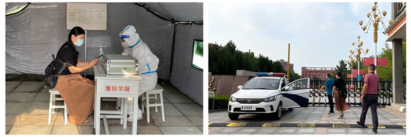 安顺校区对健康码为黄码的情况进行了演练。健康码查验时发现第四个学生健康码为黄码,保安指引其到临时留观点,由校医测量体温正常,查验48小时内核酸检测结果阴性,询问旅行史,启动应急处置。联系专车,转送黄码学生到潍城区集中隔离点隔离观察。