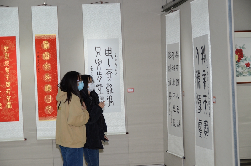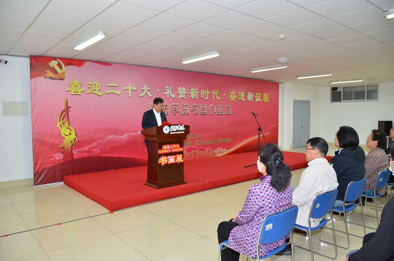 据悉,本次书画展作为潍坊学院党委“青春献礼二十大,强国有我新征程”主题宣传教育的一项重要活动,由潍坊学院工会主办、美术学院承办。前期历时3个多月,面向校友、师生广泛征集作品。展览分为“喜迎二十大”“礼赞新时代”“奋进新征程”“翰墨颂清风”四个篇章,160余件参展作品具有浓郁的时代气息和较高的艺术价值,展示了潍院师生爱党爱国的深厚情怀,进一步凝聚起了同心共筑中国梦、团结奋进新时代的磅礴力量。