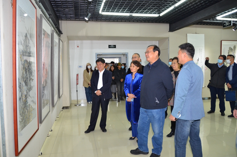 本网讯 丹青歌盛世,翰墨颂华夏。10月12日,潍坊学院“喜迎二十大、礼赞新时代、奋进新征程”主题书画作品展在学校美术馆开幕。潍坊市文联主席肖建华,潍坊市美协秘书长、奎文区美协主席谭国华,潍城区美协主席、郭味蕖美术馆馆长郭远航,潍坊学院党委副书记、校长冯滨鲁,党委副书记徐梅,党委委员、副校长马茜华,党委委员、组织部部长李连成,党委委员、宣传部部长单振涛出席开幕式。