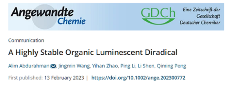 本网讯 近日,我校化学化工与环境工程学院申立博士与吉林大学电子科学与工程学院阿力木副教授、南京工业大学彭其明教授合作在《Angewandte Chemie》期刊上发表了题为“A Highly Stable Organic Luminescent Diradical”的文章(DOI:10.1002/anie.202300772)。