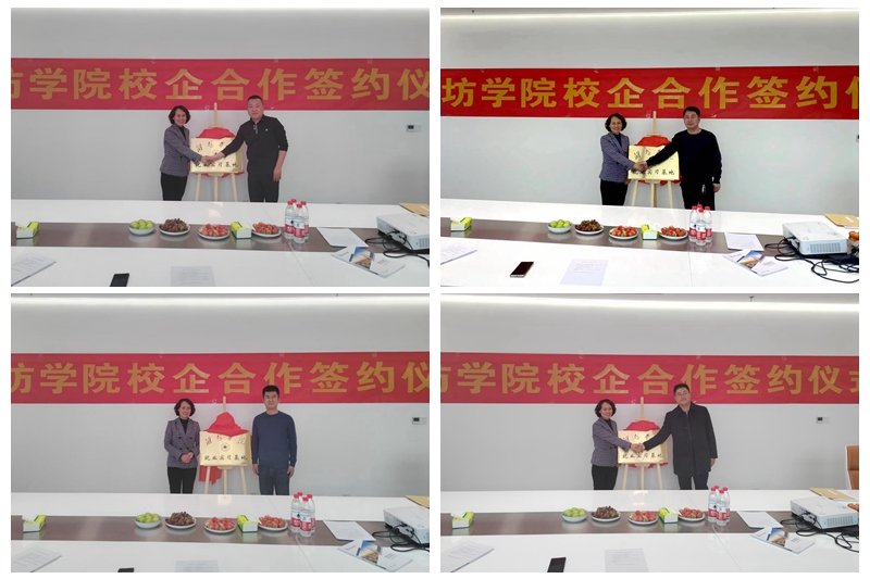 经济管理学院负责同志分别同与会企业负责人签订了就业实习基地建设及相关教科研合作协议。徐梅与企业负责人为就业实习基地揭牌。