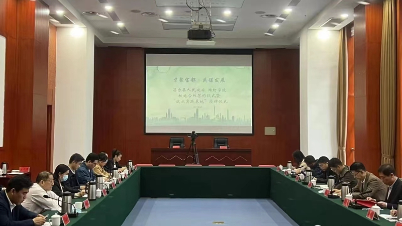 王建新介绍了潍坊学院的基本情况,并详细介绍了化学化工与环境工程学院人才培养和毕业生就业工作情况。王建新表示化学化工与环境工程学院专业设置与昌乐县产业结构非常契合,双方有很好的合作基础,希望校地合作以协议签署为标志,结出更多硕果。
