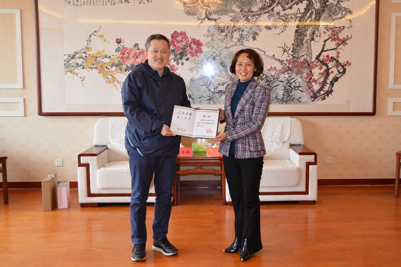 活动前,徐梅会见了王清林一行,对王清林回到母校表示欢迎和感谢,她介绍了学校毕业生就业创业的基本情况,并为王清林颁发了潍坊学院大学生创新创业导师聘书,希望在后续加强联系、加强合作,为学校事业高质量发展凝聚更多校友智慧和力量。