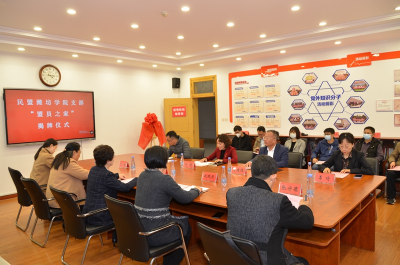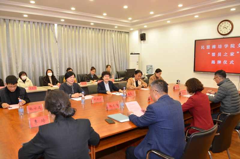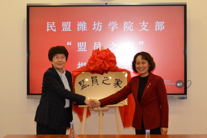 本网讯 4月7日,民盟潍坊市委潍坊学院支部“盟员之家”揭牌仪式在学校行政办公楼“党外知识分子之家”举行,潍坊市人大常委会副主任、民盟潍坊市委主委毛秀凤出席,并与学校党委副书记徐梅共同为“盟员之家”揭牌。会前,学校党委副书记、校长冯滨鲁会见了毛秀凤一行。