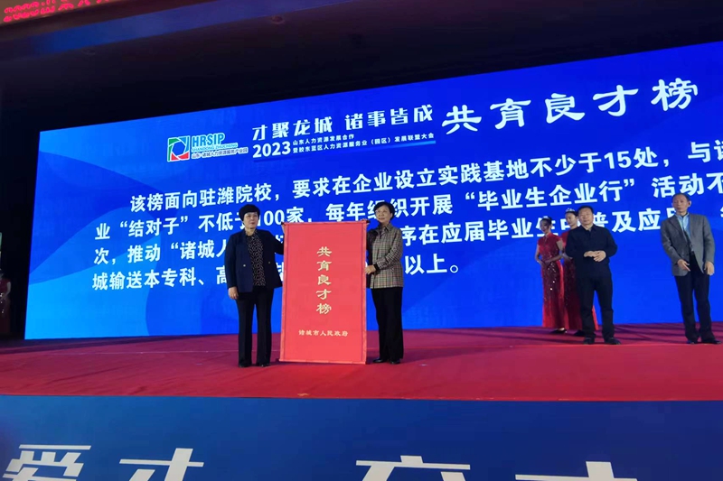 学校党委成员、副校长马茜华出席大会,并作为驻潍高校代表,为诸城市人才人力重点项目“揭榜挂帅”——共育良才榜揭榜。同时,马茜华代表潍坊学院与诸城市政府签订共育良才双方合作协议。今后,诸城市人民政府将和潍坊学院开展多渠道、多层次、多形式的交流与合作,搭建更多人才交流与产学研协同发展平台,在前期良好合作基础上,进一步深化合作发展,校地共育良才。