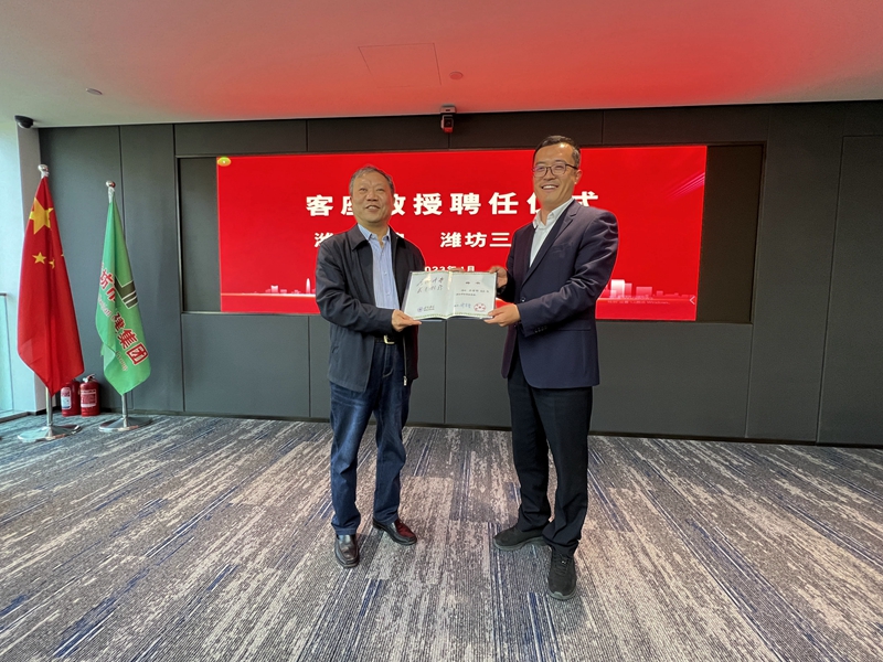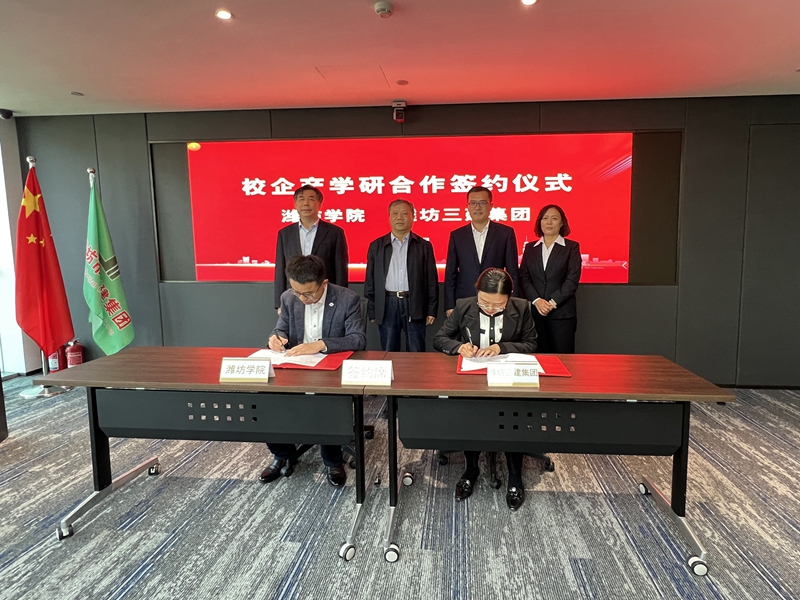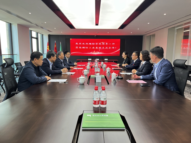 李连成一行参观了潍坊市三建集团重点建设项目、党群服务中心。潍坊学院与三建集团签署校企合作框架协议,授予三建集团“潍坊学院就业实习基地”牌匾,聘任王海明为潍坊学院客座教授。