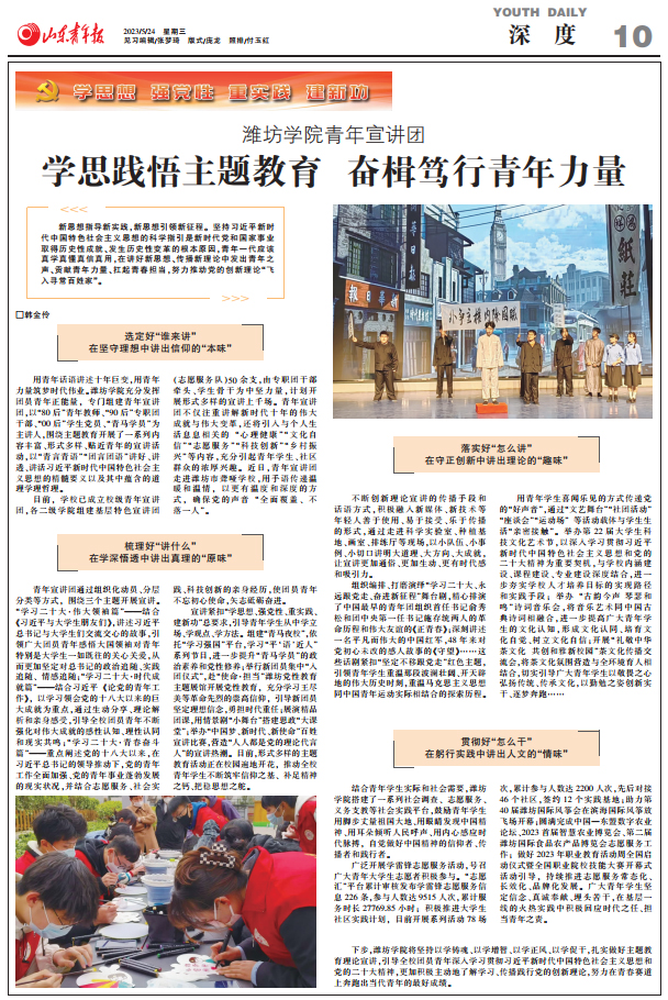 【山东青年报】潍坊学院青年宣讲团:学思践悟主题教育 奋楫笃行青年力量
