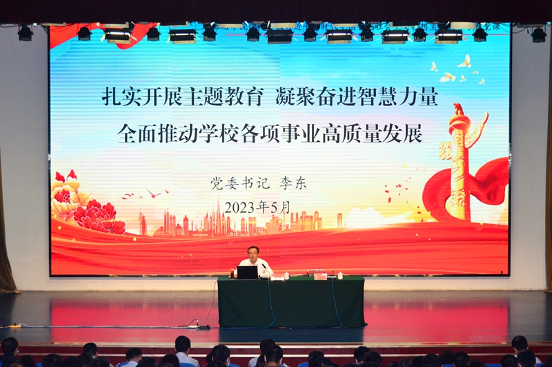 5月29日下午,党委书记李东为全体读书班学员,以及党支部书记、学生党员代表380余人讲党课,党课以“扎实开展主题教育 凝聚奋进智慧力量 全面推动学校各项事业高质量发展”为题,围绕学习贯彻习近平新时代中国特色社会主义思想,围绕落实立德树人根本任务,围绕推动高水平应用型大学建设,围绕提升干部教师干事创业能力本领进行深刻阐释。