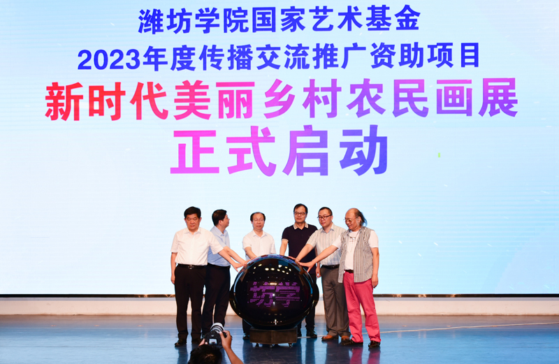 本网讯 6月12日上午,由潍坊学院主办,潍坊学院宣传部、科研处、美术学院(陈介祺金石书法学院)共同承办的,国家艺术基金2023年度传播交流推广资助项目“新时代美丽乡村农民画展”开幕式,在学校图书馆报告厅举行。副校长李英德出席开幕式并致辞。相关专家、学者出席开幕式。