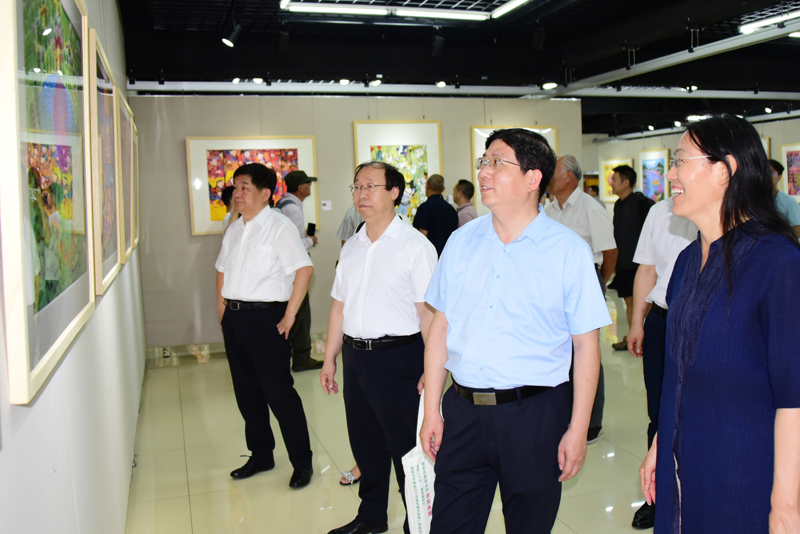 与会领导共同按下启动球,正式开启“新时代美丽乡村农民画展”项目。仪式结束后,与会领导和嘉宾来到我校美术馆,观看了正在展出的“新时代美丽乡村农民画展”。