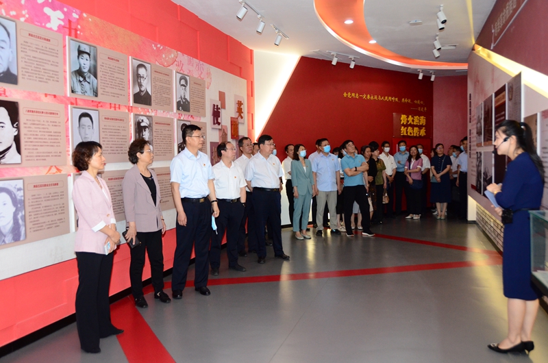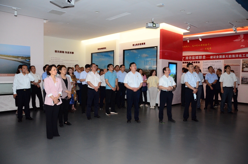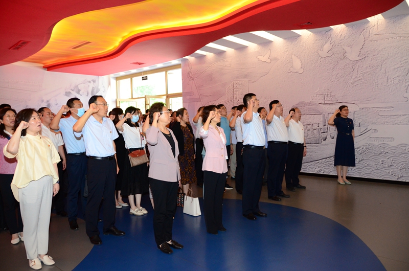 在党性教育基地展馆序厅,党员干部面对党旗,重温入党誓词,铭记初心使命。宣誓结束后,全体人员在讲解员的引领下,先后参观了“烽火滨海 红色传承”“战天斗地 奋发图强”“转型升级 扬帆起航”“锐意进取 追求卓越”四个展厅和廉政教育展馆。展厅以融合“党员、党性、党史、党建”为一体,以滨海红色历史为始点,沿着新中国成立前老党员的初心,寻着英雄烈士的鲜血,以时间年轮为轴线,讲述滨海传承红色基因的历史,展示滨海盐碱滩蝶变新城的伟大变迁。
