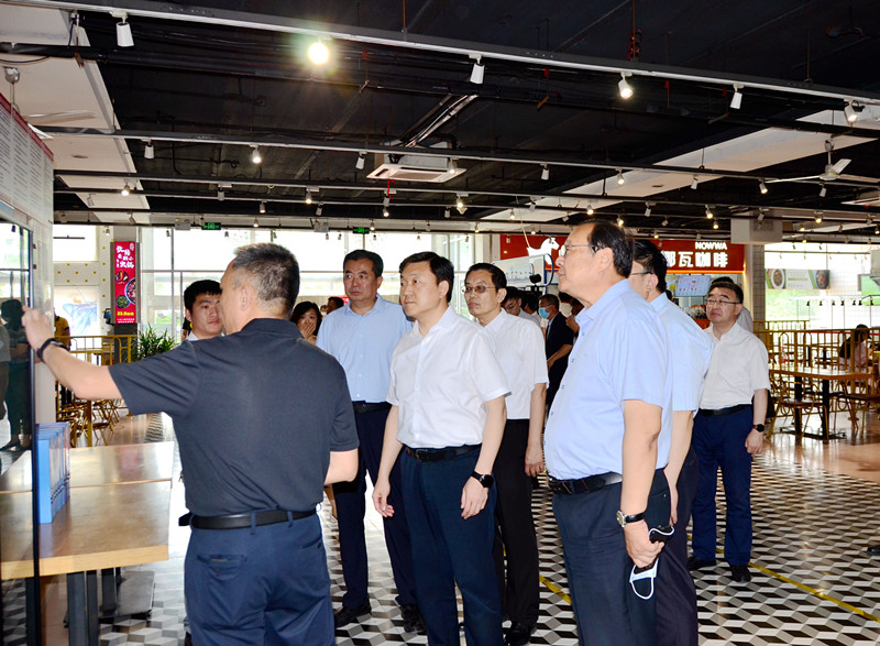 本网讯 6月13日,潍坊市委副书记、市长刘建军到我校督导检查食品安全工作。学校党委副书记、校长冯滨鲁,党委委员、副校长王旭升,市政府秘书长张志海参加活动。