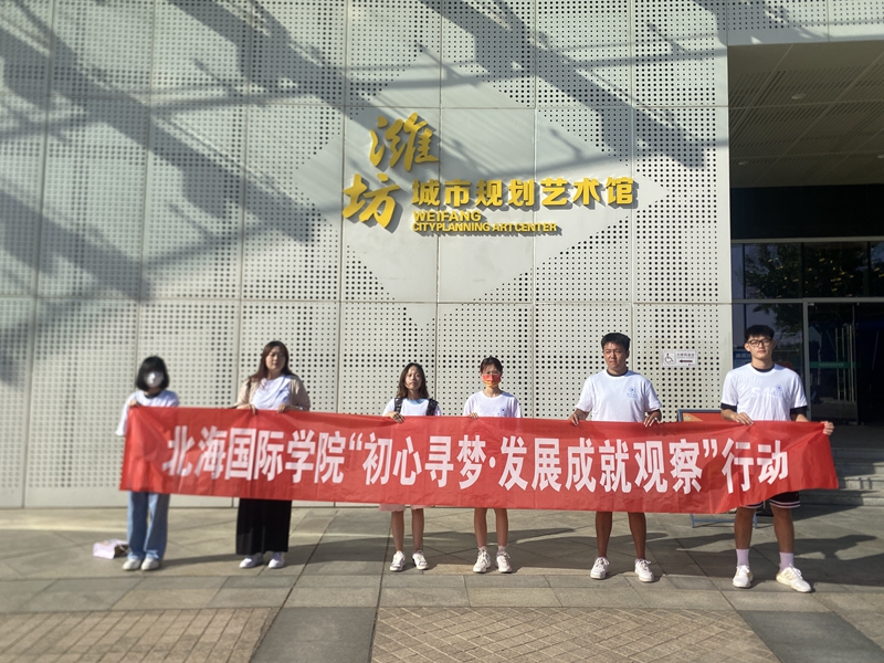 本网讯 为更好展现和宣扬潍坊城市形象,彰显城市的发展魅力与活力,进一步引领广大青年学子感知潍坊、融入潍坊,传播潍坊声音、讲好潍坊故事,带动更多青年学子在鸢都大地上施展才华、成就事业,8月18日,北海国际学院发展成就观察团的队员来到潍坊市城市规划艺术馆、潍坊人民广场与潍坊风筝广场开展暑期“三下乡”社会实践“初心寻梦·发展成就观察”活动。