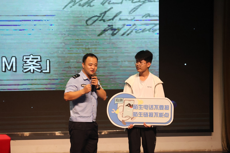 报告会围绕国家安全、反邪教、反诈骗、交通安全、消防安全、网络信息安全等内容展开。针对当前普遍存在的大学生财产安全意识薄弱、轻信他人、财物保护观念差的现象,主讲人重点强调要加强大学生防诈骗安全意识教育。活动过程中,他向同学们讲解了防范兼职刷单、杀猪盘、办理贷款、投资理财、冒充购物客服退款、买卖游戏装备等诈骗方式的措施和方法,引导同学们增强防范电信诈骗的意识和能力,教育同学们主动远离诈骗,避免经济损失。同时,主讲人在宣传讲解过程中着重剖析一些真实案例,介绍常见电信网络诈骗案件特点,告知甄别办法,进一步增强学生“免疫力”。