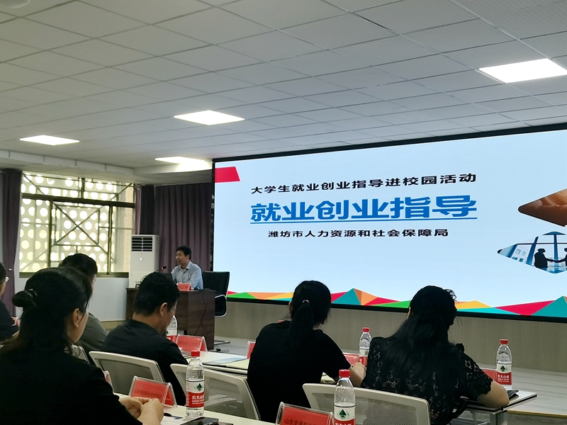 本网讯 9月19日,由潍坊市人力资源和社会保障局主办,潍坊市公共就业和人才服务中心和潍坊创业大学承办的“大学生就业创业指导进校园 驻潍院校就业创业指导工作人员培训班”在潍城人力资源服务产业园五楼顺利举行。我校学生工作处、创新创业学院、数学与信息科学学院相关工作人员参加培训。