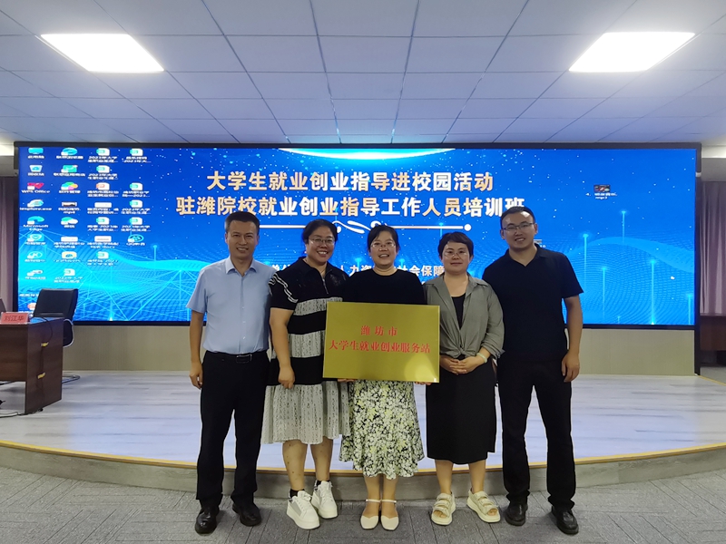 本次培训班开班典礼上还举行了“潍坊市大学生就业创业服务站”授牌仪式,我校学生工作处副处长王秀慧作为代表上台领取服务站牌匾。各驻潍高校从事就业创业工作的领导老师共计90余人参加了此次活动。