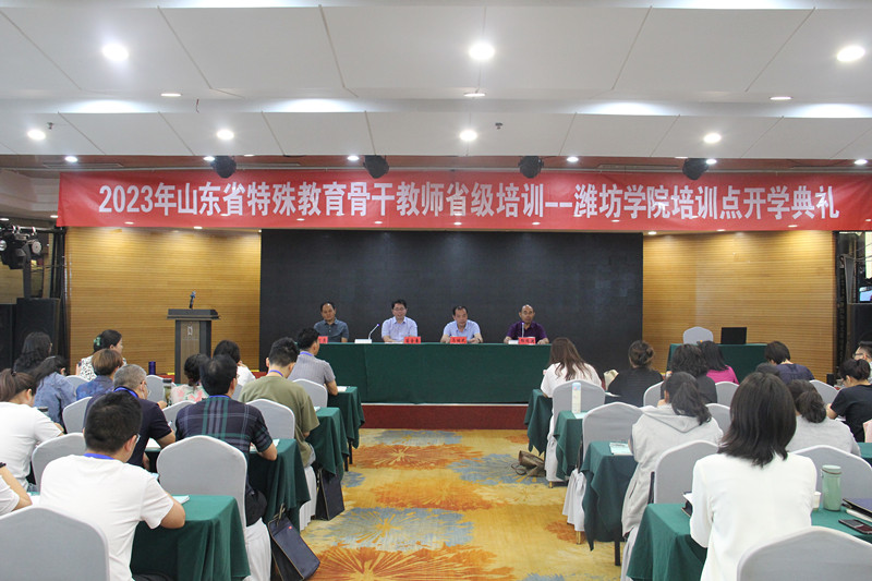 本网讯 9月23日,由潍坊学院承办的2023年山东省特殊教育骨干教师省级培训班开班,副校长苗金春出席开班式并致辞,来自全省各地的150名特殊教育骨干教师参加。