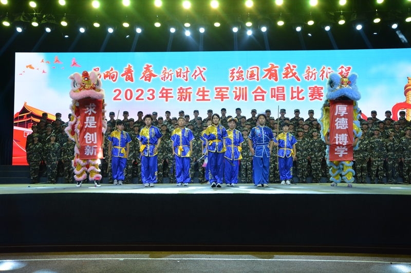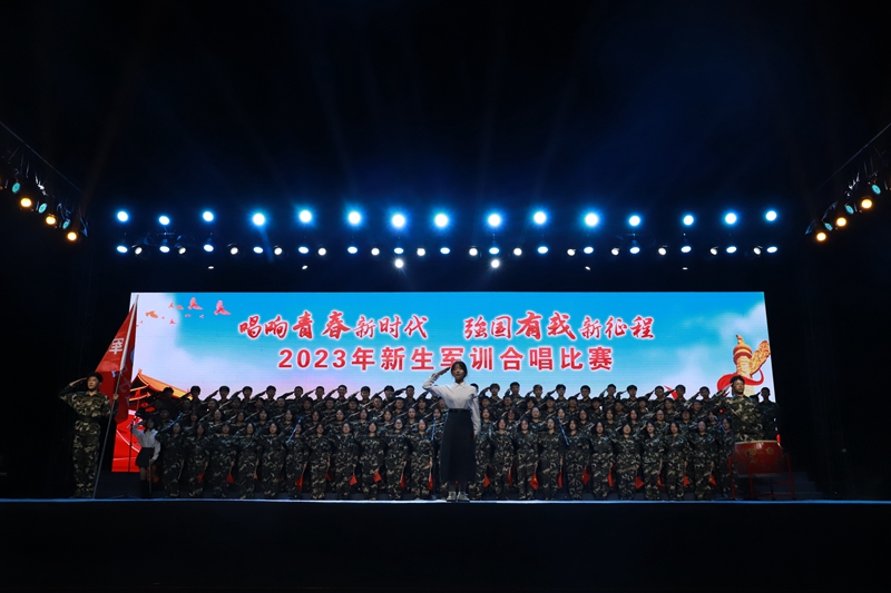 本网讯 9月22日晚,学校在体育场举办“唱响青春新时代,强国有我新征程”新生军训合唱比赛。学校纪委书记、监察专员武玉杰出席活动,宣传部负责同志、各二级学院学生工作负责人、全体军训教官以及全体2023级新生观看了比赛。