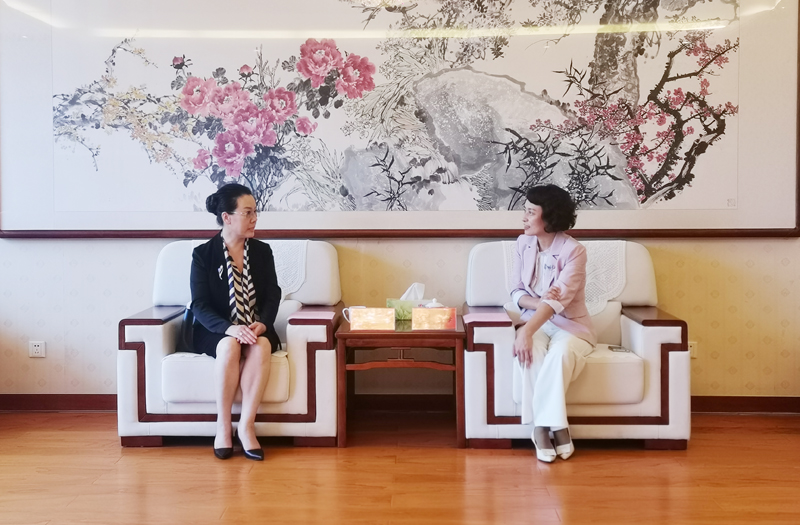 本网讯 9月24日,澳门山东社团总会副会长、澳门山东文化交流协会会长、潍坊澳门同乡联谊会会长王艳凤一行来校访问,潍坊市委统战部副部长、市工商联党组书记、常务副主席徐凤徽陪同。党委书记徐梅会见客人,党委副书记王守全参加座谈。